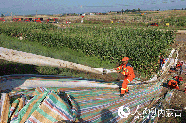 “咱们现在是5台排涝作业车,每天24小时不间断作业,均匀每日排涝45万立方米,救援队队员分两班轮换,进行排涝作业及配备的检测和保护。” 新式际华集团内蒙古哈素海抢险前方作业组长巩国平告知记者。